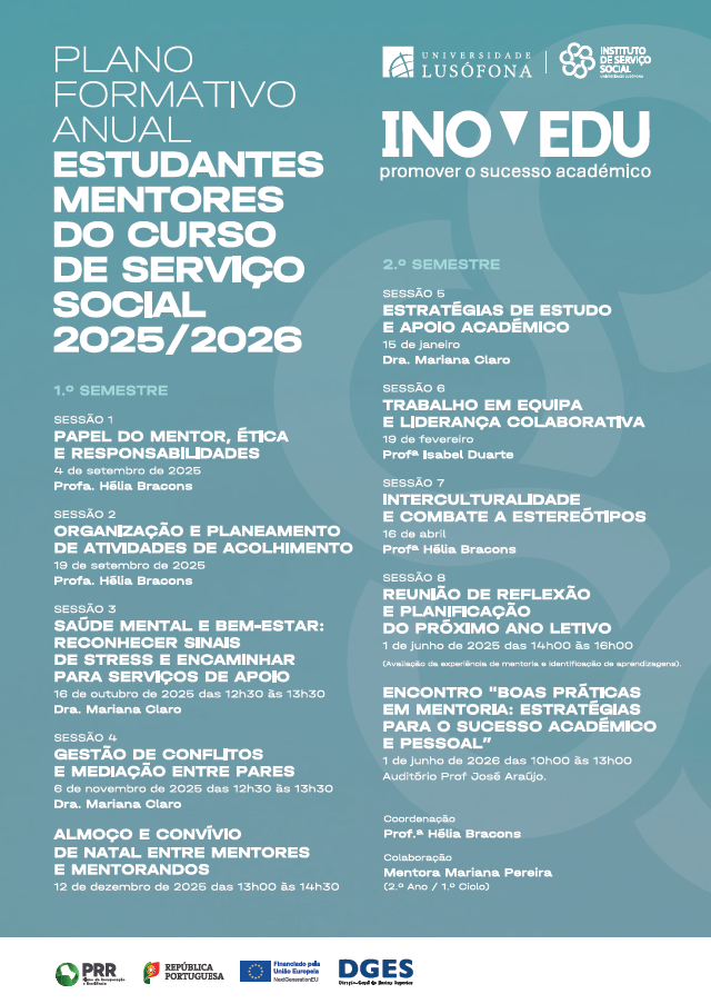 O Programa de Mentoria do INOVEDU tem como objetivo reforçar o apoio aos /às estudantes visando o sucesso académico na Universidade Lusófona.